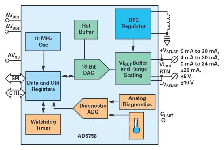 AD5758集成了先进的诊断功能,能够快速检测异常行为和故障。