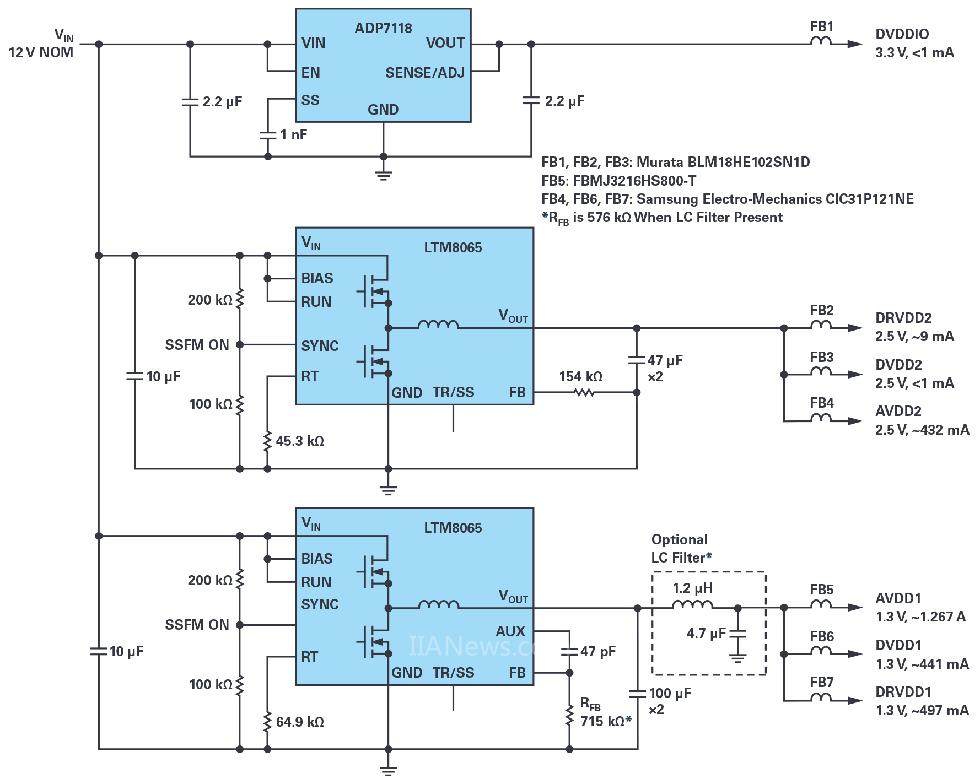 ● 使用LTM8065直接为ADC供电,不进行进一步的滤波。