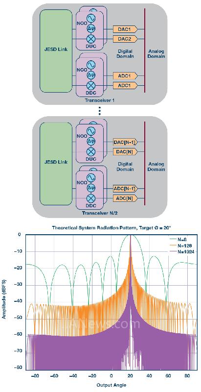 图3.可使用多个集成式收发器来增加系统的通道数量。