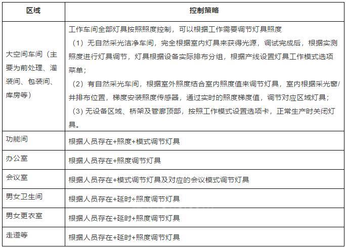 伊利联合生产厂房普遍高度为15m左右的高大空间,且内部设多个功能隔间,为了满足工作、生产的需要,厂房内选用的灯具大多为大功率LED照明灯具。然而随着工厂设备自动化程度提高,自动化产线所需的照明随之减少,此时如果仍按照原有传统设计方式进行设计,必然导致能耗的极大浪费及设备的损耗。另外,工厂内往往采用倒班的方式进行作业,一成不变的长期强光环境使得车间内工作人员日夜颠倒,不分昼夜,影响员工身体健康。