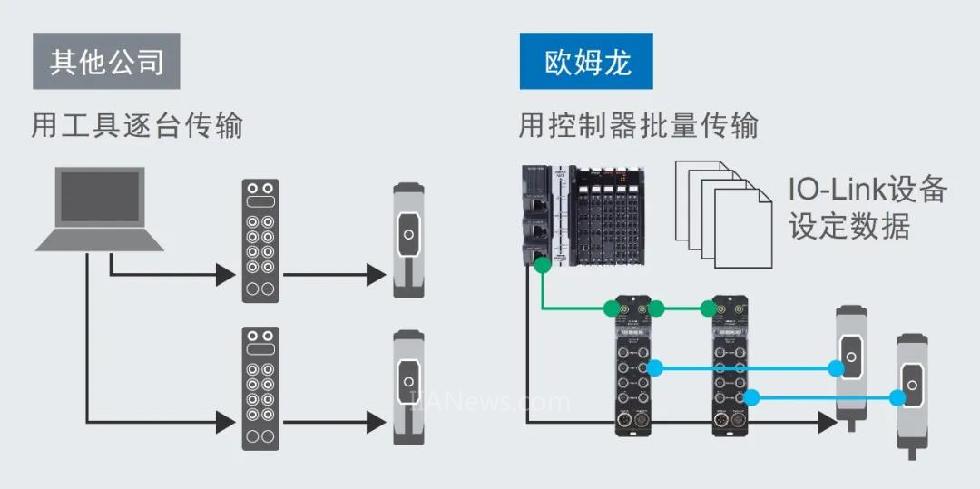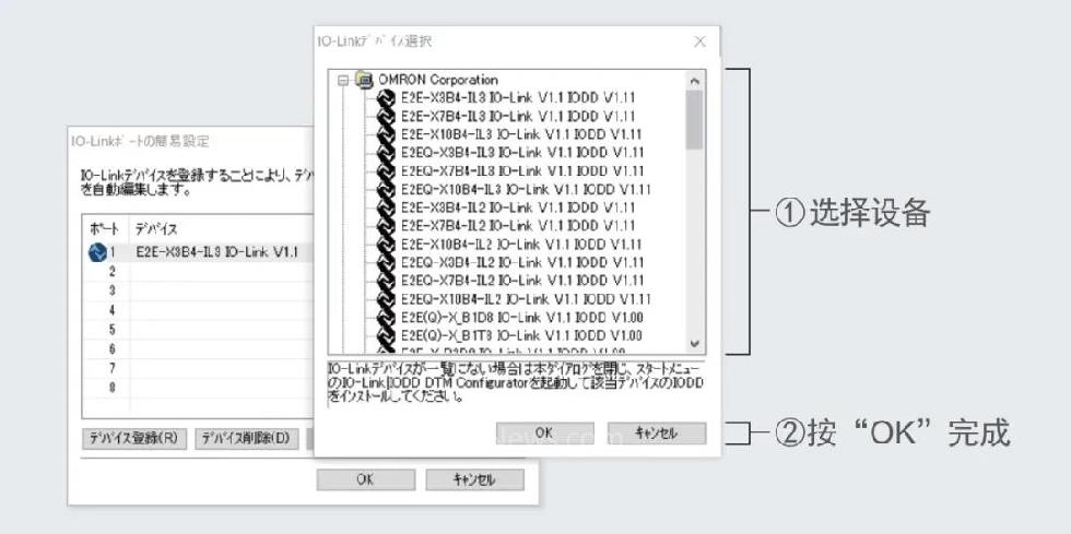 不仅可通过设定工具批量自动设定IO-Link参数,还可通过控制器,批量传输远程终端的设定以及IO-Link的设备设定。如下图所示,只需选择设备,即可批量更新参数。简化复杂的设定,防止人为失误。
