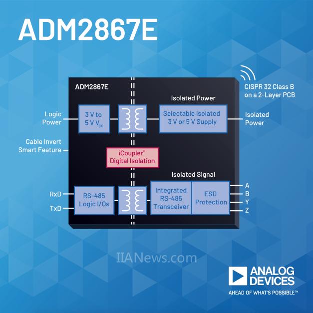 Analog Devices, Inc. (ADI)今日推出ADM2867E系列强化iCoupler®隔离RS485 + 集成隔离式DC-DC转换器。