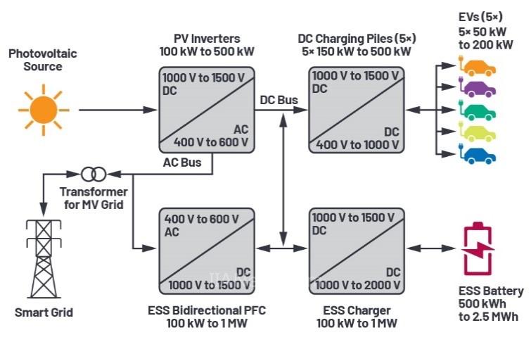 事实上,充电桩的大功率化、广泛部署是必然的趋势,但也给相关基础设施建设提出了挑战——如何经济有效的满足充电站峰值负荷要求?例如一个二十个充电桩的充电站要满足全天候的充电状态,电网需要提供的局部充电峰值功率超过1 MW。如此高的峰值负载功率可能导致电网在多个点上崩溃,或者需要投入巨额资金改善输电线路和集中式发电厂以大幅提高基本负荷能力。“增加储能系统可以利用此储备能量增加电动汽车充电负荷能力,储能系统通过调节功率峰值保持电网稳定,或是在停电的情况下提供充电电源。”对此张松刚给出了这样的解决方案思路。