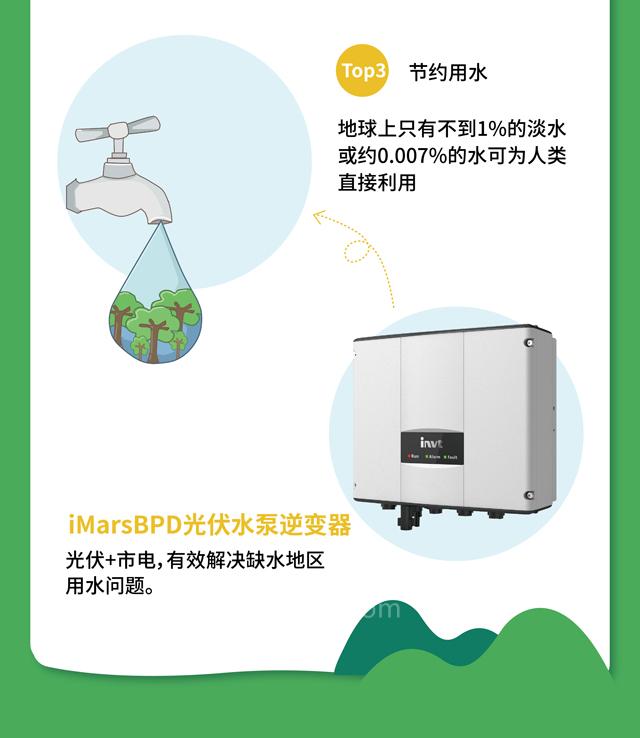 通过英威腾光伏并网逆变器,可以有效帮助改善用电结构;通过英威腾光伏水泵逆变器,则可有效解决缺水地区的用水问题;而英威腾充电桩,则可以为新能源汽车出行续航,有效助力环保……
