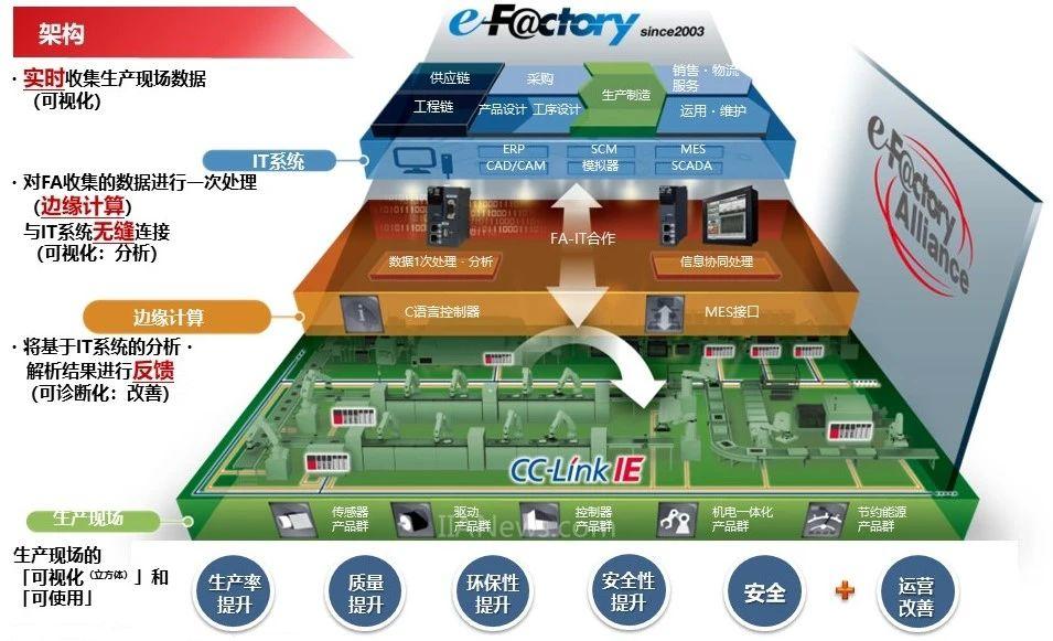 通过e-F@ctory解决方案,可以从设备和装置内部“直接”“实时”收集生产实绩、运转实绩、质量信息等生产现场的各种数据,并在IT系统中灵活运用。