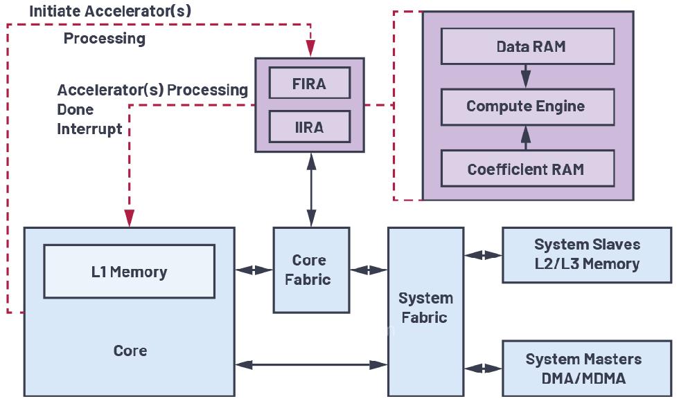 •由于内核和加速器借助专用内核结构实现了更紧密的集成,因此减少了内核和加速器之间的数据和MMR访问延迟。