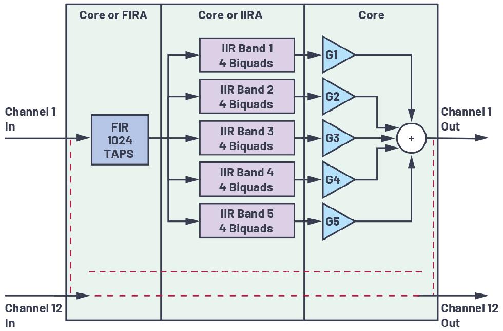 •流水线级以及输出延迟都可能会增加,具体取决于完整处理链中此类FIR和/或IIR处理级的数量。