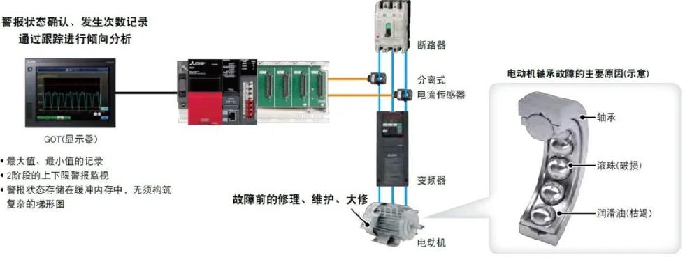 对马达等设备的电流进行实时监测以把握设备的运转状态,防止生产线突然停机,减少维护工时和费用等。