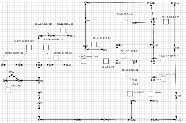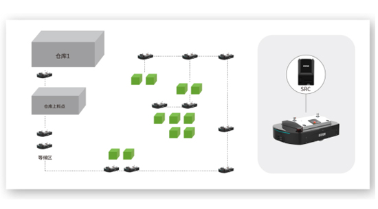 用户现场共有3个生产区域和1个大型仓库,需要将仓库的卷材运输至生产区域进行切片加工,然后进行冲片、封装、测试等多道工序加工制作,待加工完成后再将成品运回仓库。