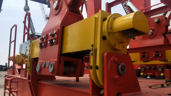 如何改善呢?那就必须在防摇结构中的推杆电机尾部安装绝对值编码器,对其行程进行实时的定位和反馈,必须保障其运行控制的精确性。经过测试,安装绝对值编码器后,设备运行过程中上下两层集装箱偏差可以稳定在±50mm以内,单列集装箱偏差可以稳定在±80mm以内。
