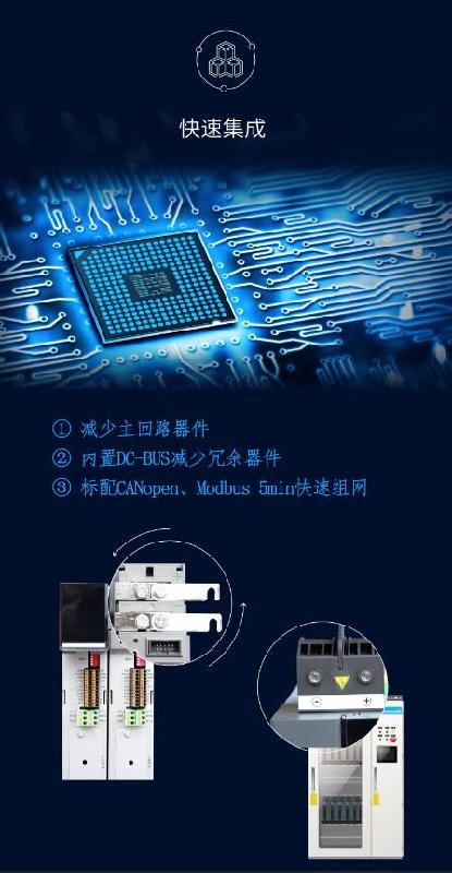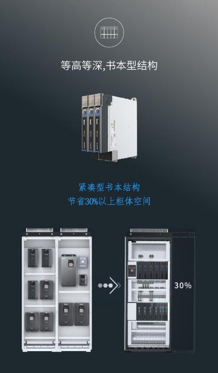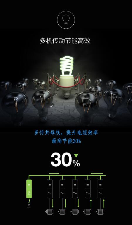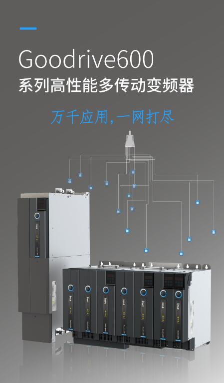 英威腾Goodrive600系列高性能多传动变频器,由整流单元和逆变单元组成,集成转矩控制、速度控制和位置控制,性能优异可实现同步电机驱动、异步电机驱动。此外, Goodrive600系列变频器,还采用等高等深书本结构设计,集成多种应用工艺,具有功率密度高、通讯组网灵活、可拓展性强、应用灵活等优点,可广泛应用于金属加工、印刷包装、纺织机械、纸巾机械、小型造纸等多电机传动单台设备/多台设备组成的连续生产线配套。