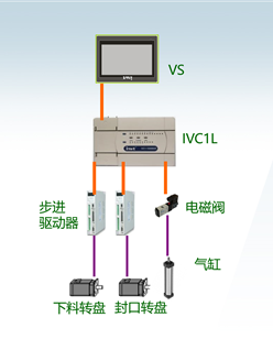 小罐茶包装设备控制系统的核心部分采用英威腾IVC1L系列PLC,通过步进驱动器和电磁阀分别控制下料转盘/封口装盘的转动,以及气缸的各个动作,实现了小罐茶生产从称重罐装到抽真空封口全自动流程作业,同时上位配备大屏人机交互界面--英威腾VS触摸屏,操作简便人性化,全机只需要一名操作员,设备运行速度高达600-700罐/小时,整个罐装快速精准,封口牢固美观,获得客户的认可。