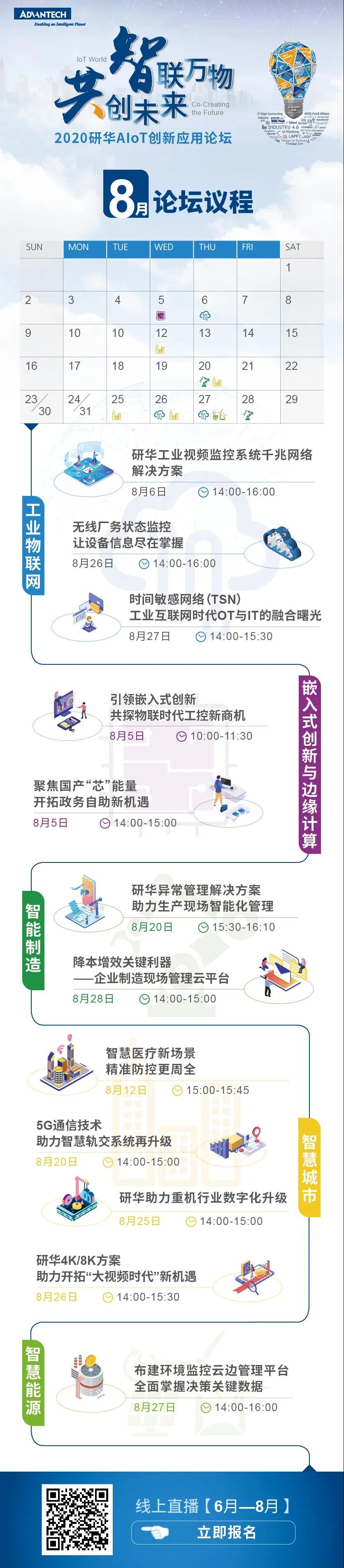 8月我们将继续围绕“工业物联网、嵌入式创新与边缘计算、智能制造、智慧城市、智慧能源”五大主题,与各位分享AIoT最新方案与应用~