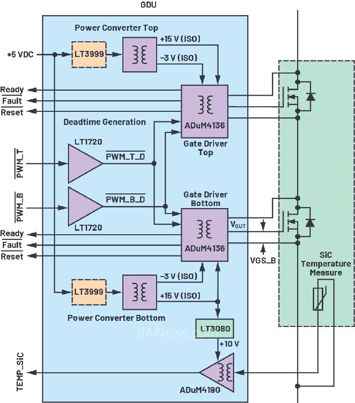 图3. ADuM4136和LT3999栅极驱动器单元