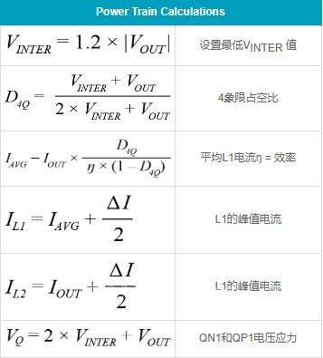 通过低通滤波器CF, RF缓解控制电压的急剧变化。传动系统包含两个MOSFET,分别是N沟道QN1和P沟道QP1;两个分立电感L1和L2以及一个输出滤波器。用两个分立电感替代单个耦合电感可以扩展适用的磁电范围,并且可以使用以前经过认证和测试的扼流圈。因为输出具有双极性特性,所以输出滤波器仅采用陶瓷电容组成。