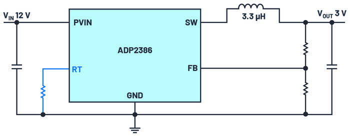 图1.ADP2386降压变换器,其开关频率由电阻RT设置