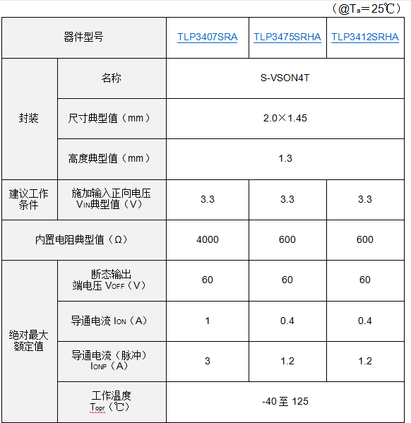 [1] 根据东芝调研(截至2020年8月25日),适用于最高额定工作温度为125℃的光继电器。