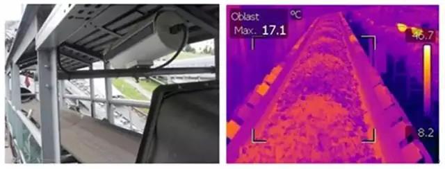 煤炭传送带安装在传送带一端的上方,提早发现燃烧的煤炭,防止煤炭点燃输送设备。系统也可检测到由于老化、摩擦等原因引起的皮带、托辊发热现象。及时起到预警作用,从而减少或避免皮带输送机事故发生;