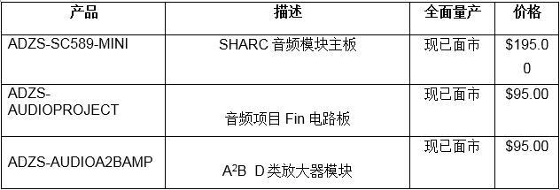 Analog Devices, Inc. (ADI)今日推出采用SHARC®音频模块(SAM)的完整音频系统,可用于数字音频设备,包括音频FX处理器、多通道音频系统、MIDI合成器,以及其他基于DSP的音频系统。