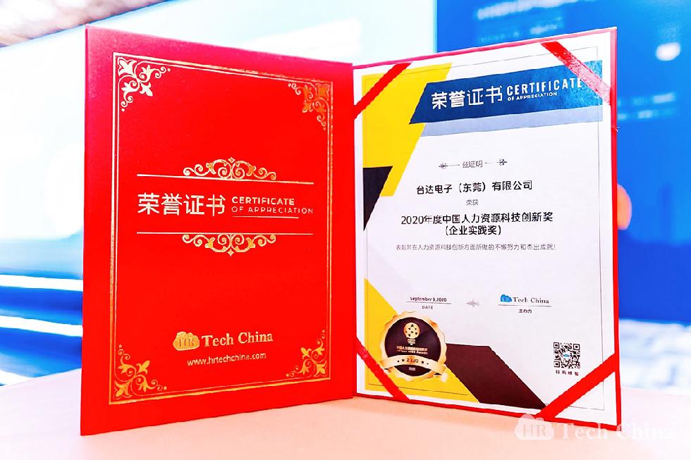 台达荣获“2020年度中国人力资源管理科技创新奖(企业实践奖)”