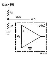 图1.电阻分压器从12V总线输入生成3.3VDC