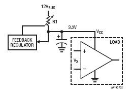 图2.反馈环路调整串联电阻R1值以调节3.3V
