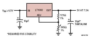 图4.集成式线性稳压器示例:只有3个引脚的7.5A线性稳压器