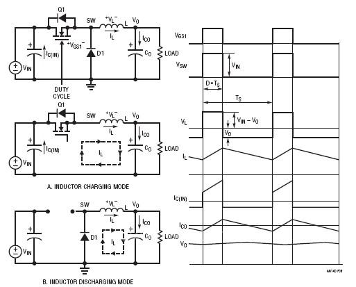 其中TON是开关周期TS内的导通时间间隔。如果TON/TS之比定义为占空比D,则输出电压VO为: