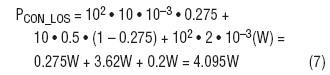 例如,12V输入、3.3V/10AMAX输出降压电源可使用以下元件:MOSFET RDS(ON) = 10mΩ,电感RDCR = 2 mΩ,二极管正向电压VD = 0.5V。因此,满负载下的传导损耗为: