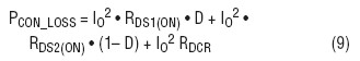 如果10mΩ RDS(ON) MOSFET也用于Q2,同步降压转换器的传导损耗和效率为: