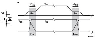图10.降压转换器中顶部FET Q1的典型开关波形和损耗