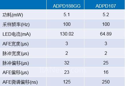 表1.ADPD188GG和典范产品ADPD107之间的光学模块比较