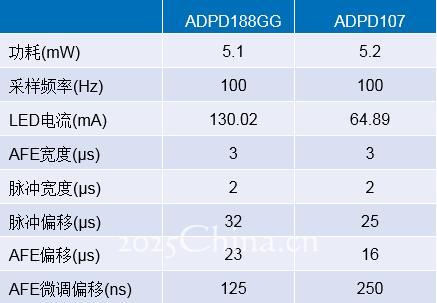 表1.ADPD188GG和典范产品ADPD107之间的光学模块比较