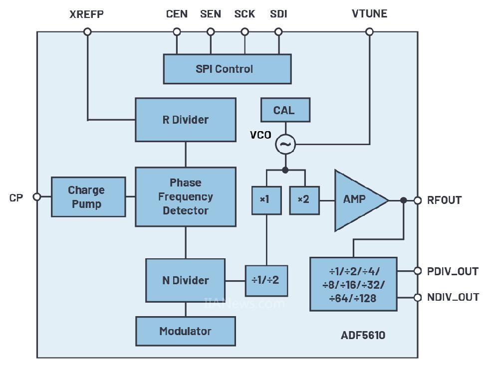 新推出的ADF5610是一款集成式锁相环(PLL)和压控振荡器(VCO),充分体现了ADI致力于解决这些问题最终取得的成果。