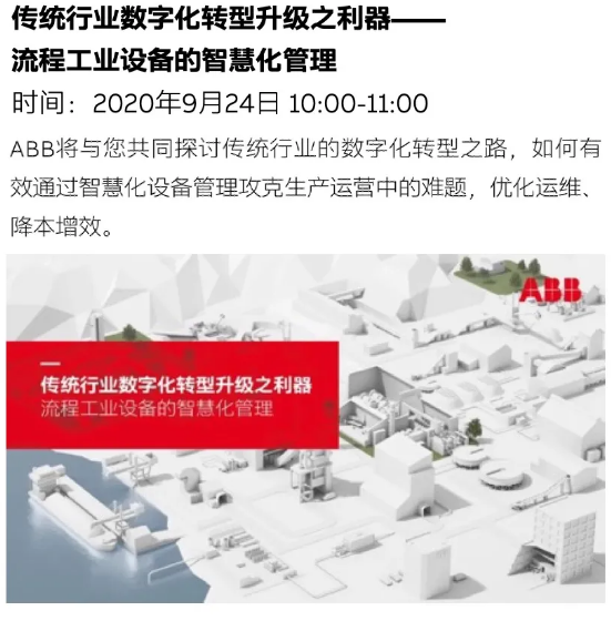 9月22日,2020 ABB工业自动化论坛终于就要与大家见面了!记得扫描文末二维码进入微官网提前注册哦!
