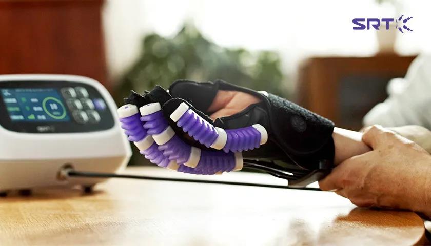 基于公司的软体机器人技术、新材料技术、气动控制技术等领先技术,SRT软体机器人创新性地研发出了“SRT软甲手部康复机器人”。