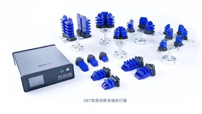SRT于2016年推出国内首款创新末端执行器,该产品源自新兴的软体机器人技术学科,整体使用柔性材质加工制造而成,通过气压驱动实现弯曲、扭转或伸展作动,模拟人手的抓取动作。