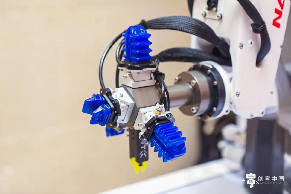 “SRT创新末端执行器”项目也是2020“创客北京”大赛企业组特等奖项目,该产品源自新兴的软体机器人技术学科,可模拟人手的抓取动作。在工业应用中,无需根据物体精确的尺寸、形状进行预先调整,可便捷且低成本地实现力度控制和柔性抓取功能。