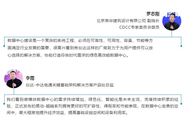 会议期间,在上百位行业大咖的共同见证下,台达正式向业界发布,聚焦IDC、边缘计算用户切实需求的台达易动-超越系列微模块数据中心解决方案。