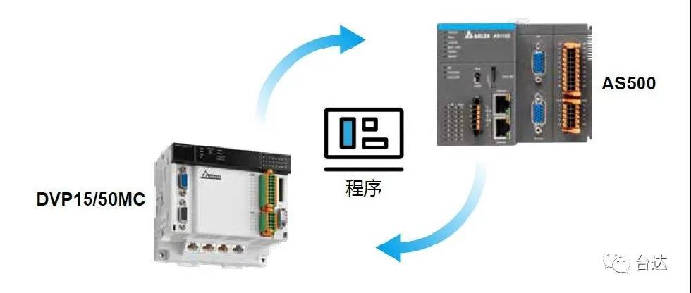 此外,AS500运动控制器也可以与台达DVP-MC运动控制平台互通,让使用者所开发的项目程序,可以依实际系统需求在DVP与AS系统之间实现快速转换。