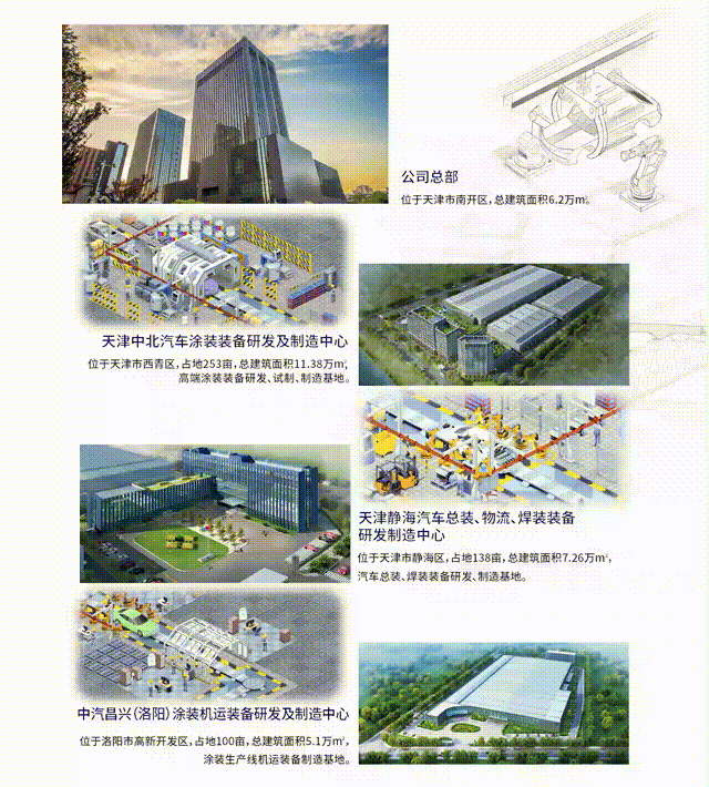自主研发的用于汽车涂装、总装工艺的翻转输送机、RGV立体库、AGV自动运输系统,均代表了柔性化装备的世界先进水平;轮转除湿系统、VOC浓缩净化系统、干式漆雾处理系统等高效节能系统和装备大幅提升了汽车制造过程中的环保和精益性。车身质量自动检测系统等已经广泛应用于新建项目;在线品质检测、能源管控、生产线远程监控、维护等技术为代表的智能化控制系统,体现出未来智能工厂的先进管理理念。