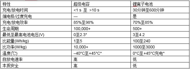 静电双层电容(EDLC)或超级电容(supercaps)都是有效的储能设备,可以弥补更大更重的电池系统和大容量电容之间的功能差距。相比可充电电池,超级电容能够承受更快速地充放电周期。因此在电能相对较低的备用电源系统、短时充电系统、缓冲峰值负载电流系统和能量回收系统中,超级电容用于短期储能比电池更好(参考表1)。在现有的电池-超级电容混合系统中,超级电容的高电流和短时电源功能是对电池的长持续时间、紧凑储能功能的有效补充。