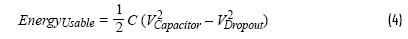 采用前面的电容电能计算方法,减去低于VDropout时无法获取的电能,可以得到:
