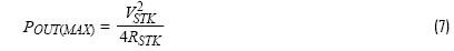 为了计算最大的功率传输,我们可以对前一个公式求导,求出它为零时的条件。RSTK = RLOAD时就是这种情况。