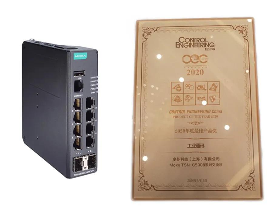 Moxa 除了成为第一批参与 TSN 前瞻性技术应用推广试验的厂商,Moxa TSN-G5008 系列交换机更赢得工业自动化领域权威年度产品评选活动大奖,摘下 “CEC 2020 年度最佳产品奖” 工业通讯大类-最佳产品奖。颁奖典礼荣将于工博会同期举办。