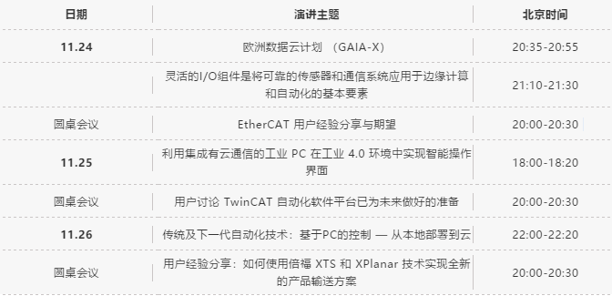 展会期间,倍福的自动化专家将通过线上平台向您介绍我们的最新技术。同时,我们每天还会通过线上讲座、以及高端圆桌会议等形式与您进行深入交流探讨。