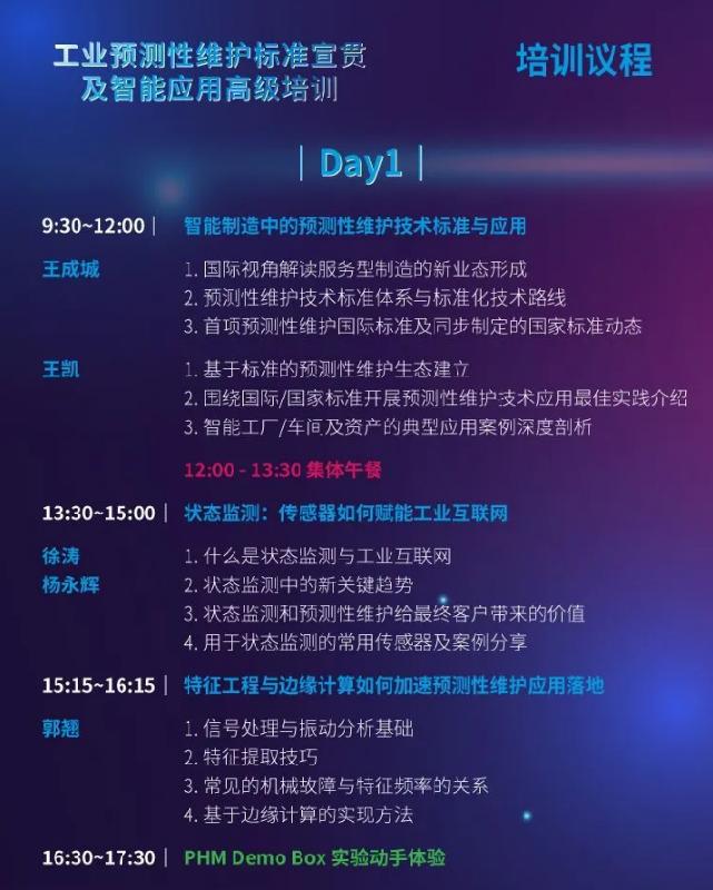 本次培训作为国内首个《工业预测性维护标准宣贯及智能应用高级培训》,带您第一时间了解首项预测性维护国际标准和国家标准的工作动态,学习并动手体验预测性维护的跨学科领域知识!
