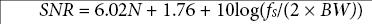 请注意,其中包括了处理增益,以考虑在2 × BW之外采样的额外过采样过程。在下式中,将采样频率提高k倍(其中k是参与平均的样本数或过采样率),会导致SNR提高。
