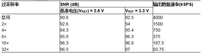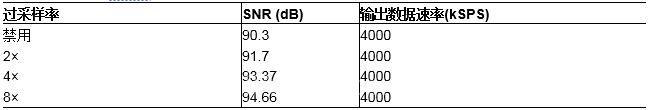 表3.AD7380正常平均过采样的典型SNR性能