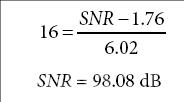 给定理想16位ADC,计算SNR,可获得的最大SNR为98 dB。